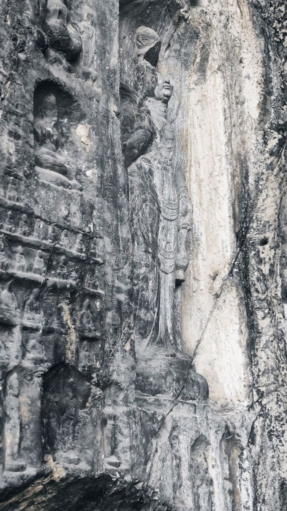 龙门石窟前,伊河在此流过了千年。大河看过了唐朝一代大兴的佛教,在她的杰作上点缀起石窟大佛,她可曾想过如此信仰转化成的动力竟堪比鬼斧神工,伊河她是否也有信仰?